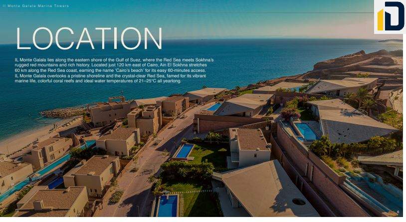 Marina Towers Il Monte Galala حيث يلتقي الإبداع الأوروبية للبنايات والأبراج الجديدة بمواصفات عالمية والطبيعة الخلابة البحر الأحمر بنقاه بأفضل إطلالة مثالية ومميزة يمكنك أن تحصل على الطاقة الصباحة من خلالها، والمشروع يضم 10 أبراج كل منها يتكون من دور أرضي و22 دور علوي أي فرصتك الآن لتحصل على بيئة من البيئات السكنية السياحية تبعد عن القاهرة فقط سعاة فقط.